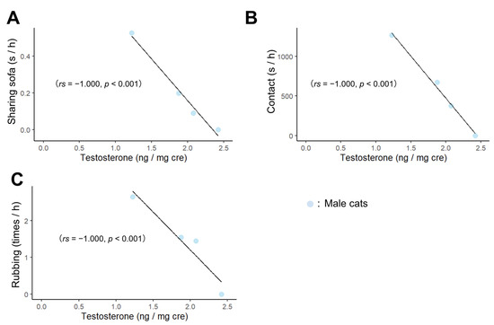 3.2. Correlation of Male Cats’ Behavior toward Humans with Age and Hormones