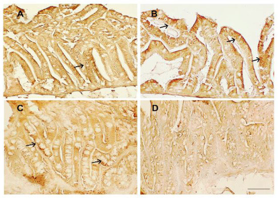 3.3. Intestinal Immunohistochemistry