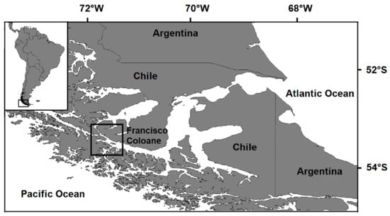 Study area in Chile: Francisco Coloane Marine and Coastal Protected Area in the Magellan Strait, Chile (square).