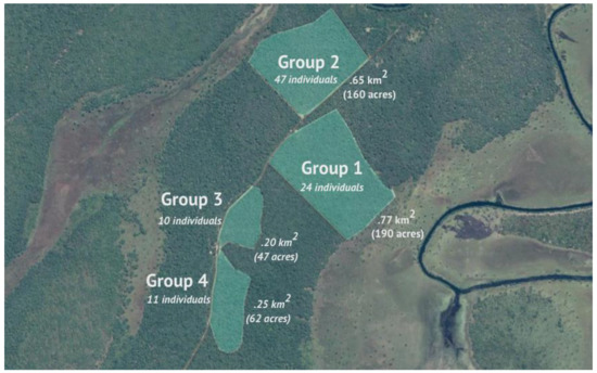 - Chapman, C.; White, F.; Wrangham, R. Party Size in Chimpanzees and Bonobos: A Reevaluation of Theory Based on Two Similarly Forested Sites. In Party Size in Chimpanzees & Bonobos; Harvard University Press: Boston, MA, USA, 1994; pp. 41–57. ISBN 9780674116634. [Google Scholar]