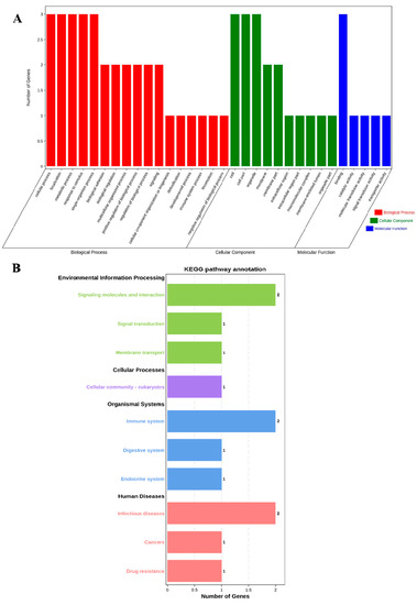 Furthermore, we performed KEGG pathway enrichment analysis to explore the most active pathways of these genes; the results revealed that these genes were related to signaling molecules and interactions, as well as the immune system and infectious diseases, which are partially but not completely involved (Figure 1B).