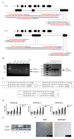 - Feng, C.; Xu, X.; Dong, W.; Chen, C.; Yan, J. CRISPR/Cas9 knockout of PLIN1 gene enhances lipolytic effect in 3T3-L1 adipo-cytes. Chin. J. Biotechnol. 2020, 36, 1386–1394. (In Chinese) [Google Scholar]