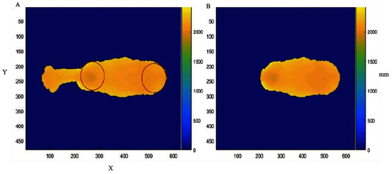 - Gomes, R.A.; Monteiro, G.R.; Assis, G.J.F.; Busato, K.C.; Ladeira, M.M.; Chizzotti, M.L. Technical note: Estimating body weight and body composition of beef cattle trough digital image analysis. J. Anim. Sci. 2016, 94, 5414–5422. [Google Scholar] [CrossRef] [PubMed]