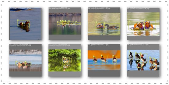 The data used in this paper for object detection come from the internet. In order to ensure the authenticity and validity of the experiment, we screened the quality of the data to meet the minimum pixel requirements of more than 1080P, and all of them are authentic bird images in a wetland environment. The collected data contain a variety of interference factors, such as overlap, distance change, light and shade change, vegetation shadow, non-avian animals, and garbage. These interferences can replicate many conditions in real scenes, enhance the robustness of the algorithm, and improve the generalization ability of the model to ensure the effectiveness of the method. In addition, considering the occlusion between birds, this paper not only marks the whole body of the bird but also marks the head of the bird separately.