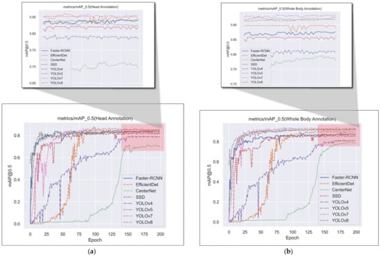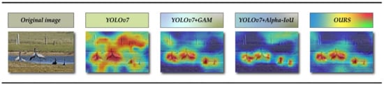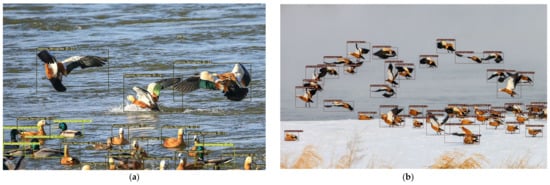 In object detection, if only the bird’s body is considered for annotation, it may lead to more overlapping parts between the annotation frame and the background, thus causing too much background noise and affecting the accuracy and reliability of object detection. A bird’s head has different structural forms, which can accurately identify birds. In complex scenes, such as those with object overlap and occlusion, the annotation of a bird’s head can help to better distinguish different birds and reduce the probability of misjudgment. Therefore, in this paper, not only the bird’s body but also the bird’s head is labeled, and the two labeling methods form a set of comparative experiments to find the optimal model.