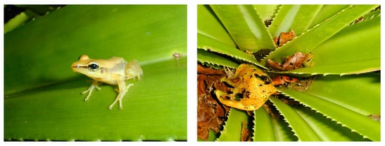 - Lehtinen, R.M. Phytotelma-Breeding Frogs of the World website. Version 1.11. 2023. Available online: https://sites.google.com/site/phytotelmbreedingfrogsworld/home (accessed on 20 February 2023).