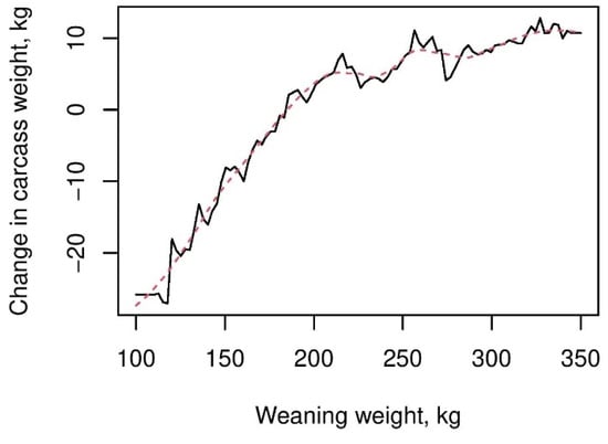 An interesting finding of our study is the association found between the WW and the CW of cattle. We found that early weaners (100–150 kg) were associated with significantly lower CW. Further, they were kept longer in the grass to reach higher body weights. As a result of poor growth, cattle weaned at lower weights resulted in notably higher costs from post-weaning to slaughter. Even though early weaning is generally undertaken to optimize the reproductive performance of the mother [24], it can negatively impact profitability unless the growth of early weaners is carefully monitored to obtain higher weight gain during the post-weaning period. Sorting cattle by the weight category at weaning may assist farmers in better monitoring and maintaining animals’ weight gains, for instance, to decide targeted nutrition to meet specific weight gain goals. Such proactive actions may result in reduced costs and higher yields.