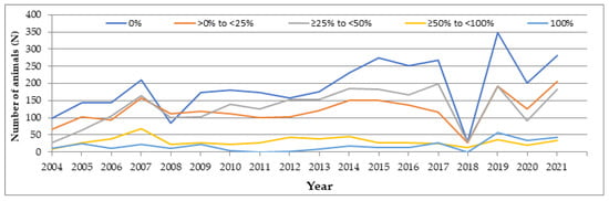| >0%–<25% | 16 (5.80%) | 104.67 | 17 (6.16%) | 107.97 | 19 (6.88%) | 108.84 |