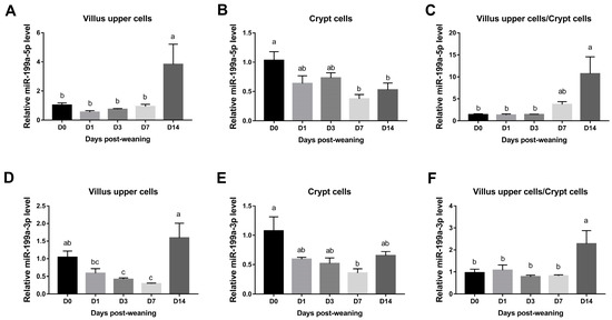 3.1. Expression Levels of miR-199a in Piglets during the Postweaning Period
