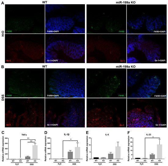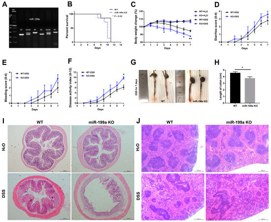 3.2. Loss of miR-199a Increased Susceptibility to DSS-Induced Colitis