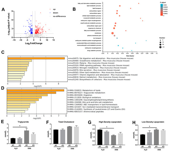 - Kwon, J.; Lee, C.; Heo, S.; Kim, B.; Hyun, C.-K. DSS-induced colitis is associated with adipose tissue dysfunction and disrupted hepatic lipid metabolism leading to hepatosteatosis and dyslipidemia in mice. Sci. Rep. 2021, 11, 5283. [Google Scholar] [CrossRef] [PubMed]