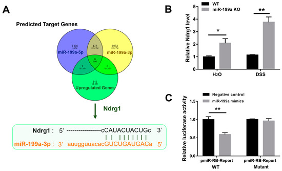 3.6. Validation of Ndrg1 as a Candidate Target of miR-199a-3p