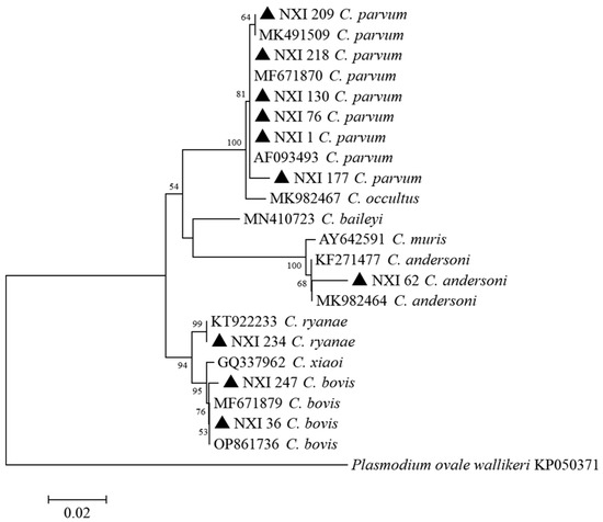 - Talebi, R.; Javadi Mamaghani, A.; Kheirandish, F.; Karimi, A.; Ebrahimzadeh, F.; Kazempour, M.; Zebardast, N.; Fallahi, S. Molecular evaluation of Cryptosporidium spp. among breeding calves of Lorestan Province Western Iran. Vet. Med. Sci. 2023, 9, 363–371. [Google Scholar] [CrossRef]