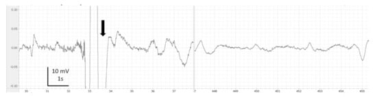 Five criteria were considered for fish to define unconscious: decrease of Ptot, decrease of F50, decrease of SEF, increase of low frequencies (Delta and Thera) (0–8 Hz) and decrease of high frequencies (Alpha and Beta) (8–32 Hz). Such criteria have been used in birds [25], lambs [26], cattle [27,28] and fish [13,29]. However, these studies did not evaluate all the above-cited criteria used in the present study. Changes of the EEG signal to a transitional, suppressed or iso-electric phase were based on visual comparison of the signal with the baseline.