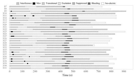 However, the duration of the transitional phase in hens was only 20 s, which is considerably shorter than in our results (108.8 ± 54.9 s). The transitional phase (Figure 2) is probably a transition trace between the baseline and the excitation phase. The EEG visual analysis alone is not sufficient to determine the onset of unconsciousness. Therefore, spectral analysis helped in confirming the onset of unconsciousness at the beginning of the suppressed phase.