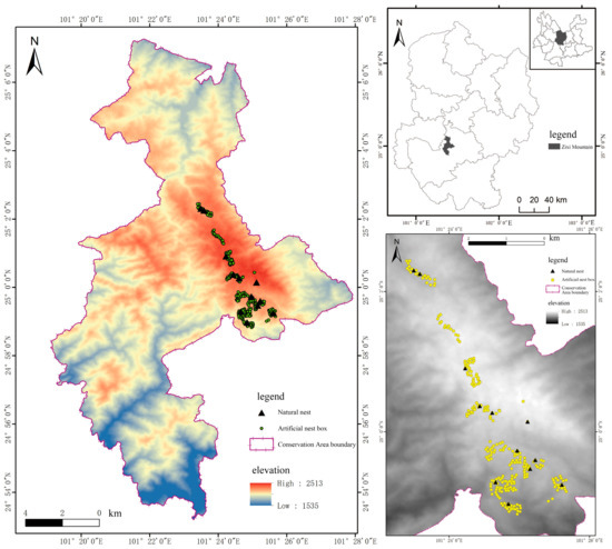 - An, K. Present Status of Zixishan Nature Reserve and Corresponding Countermeasures of Protection and Management Nature Reserve. For. Inventory Plan. 2018, 43, 126–133, (In Chinese with English Abstract). [Google Scholar]