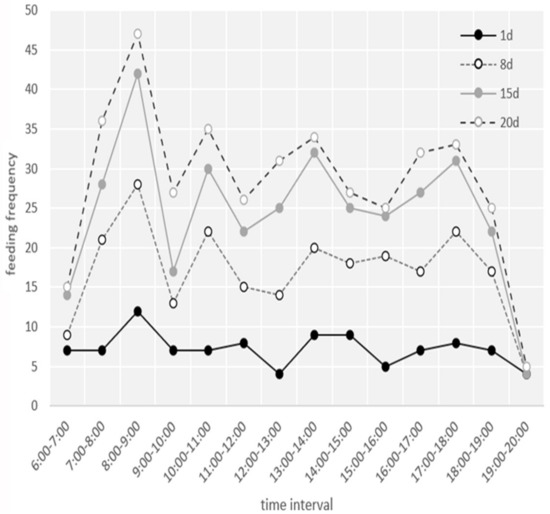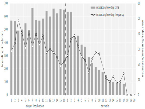 3.3. Nestling Brooding and Feeding Behavior