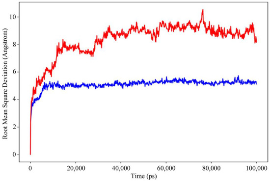 For 100 nanoseconds, Desmond, a software from Schrödinger LLC, NY, USA (version 2019.4), was used to model the molecular dynamics [51]. The earliest phase of the receptor and peptide complex for molecular dynamics simulation was the docking experiments. Molecular docking studies can predict the ligand binding state in static situations. Docking is useful because it provides a static view of a molecule’s binding pose at the active site of a receptor [52]. By integrating Newton’s classical equation of motion, MD simulations typically compute atom movements over time. Simulations were used to predict the ligand binding status in the physiological environment [53,54].