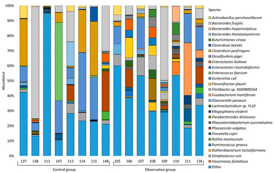 APA StyleGryaznova, M., Smirnova, Y., Burakova, I., Morozova, P., Nesterova, E., Gladkikh, M., Mikhaylov, E., & Syromyatnikov, M. (2023). Characteristics of the Fecal Microbiome of Piglets with Diarrhea Identified Using Shotgun Metagenomics Sequencing. Animals, 13(14), 2303. https://doi.org/10.3390/ani13142303