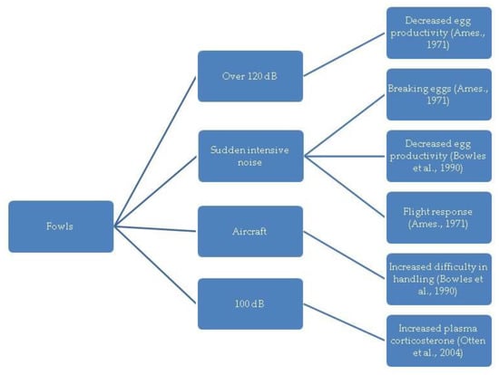 In the diagrams given in Figure 2, Figure 3, Figure 4, Figure 5 and Figure 6, the most important effects of sound and noise on different species are presented.