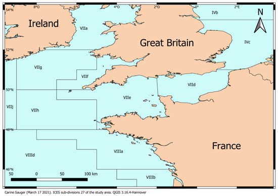 Map of ICES Area 27. The study took place in the VIId division. (Carine Sauger-March 17 2021-QGIS 3.16.4-Hannover).