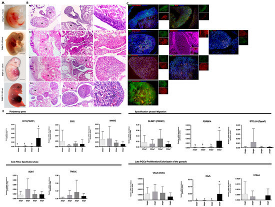 - Nicholls, P.K.; Schorle, H.; Naqvi, S.; Hu, Y.C.; Fan, Y.; Carmell, M.A.; Dobrinski, I.; Watson, A.L.; Carlson, D.F.; Fahrenkrug, S.C.; et al. Mammalian germ cells are determined after PGC colonization of the nascent gonad. Proc. Natl. Acad. Sci. USA 2019, 116, 25677–25687. [Google Scholar] [CrossRef]