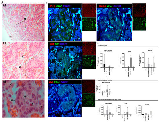 4.1. Histological and Immunophenotype Analysis of the Porcine Germ Cells
