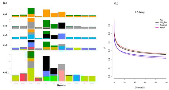 - Porto-Neto, L.R.; Kijas, J.W.; Reverter, A. The Extent of Linkage Disequilibrium in Beef Cattle Breeds Using High-Density SNP Genotypes. Genet. Sel. Evol. 2014, 46, 22. [Google Scholar] [CrossRef] [PubMed]