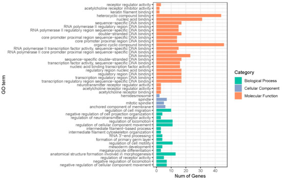 In this study, Ensembl UMD3.1 (http://asia.ensembl.org/Bos_taurus/Info/Index/, accessed on 2 October 2021) database was used to locate genes within 1 Mb upstream and downstream of significant SNP sites. To better understand the biological processes, gene ontology (GO) terms and encyclopedia of genes and genomes (KEGG) pathways were annotated, visualized, and integrated for discovery on the basis of relevant genes by using the DAVID 6.8 database (https://david.ncifcrf.gov/, accessed on 18 October 2021). A p-value < 0.05 was the threshold for significant enrichment of GO terms and KEGG pathways.