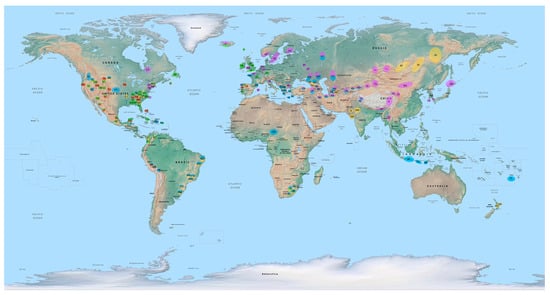 - Petersen, J.L.; Mickelson, J.R.; Cothran, E.G.; Anderson, L.S.; Axelsson, J.; Bailey, E.; Bannasch, D.; Binns, M.M.; Borges, A.S.; Brama, P.; et al. Genetic diversity in the modern horse illustrated from genome-wide SNP data. PLoS ONE 2013, 8, e54997. [Google Scholar] [CrossRef]