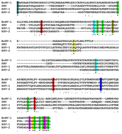 The amino acid sequence of BoHV-1 UL50 (GenBank accession: AJ004801.1) was retrieved from NCBI (
