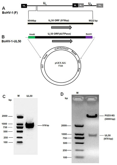 UL50 (dUTPase) and some other BoHV-1 enzymes, such as ribonucleotide reductase and DNA polymerase, were aimed to improve the understanding of BoHV-1 pathogenesis and explore their potential application as a useful antiviral target by [
