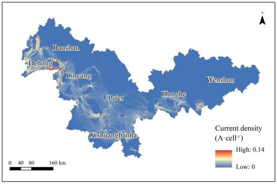 Often, resistance values are estimated through costly field surveys or expensive and long-term animal monitoring projects [41,42,43]. Our model design allows us to simulate random animal movement practically and easily without these costly challenges. The circuit theory model used in this paper can cheaply and practically be used to alleviate human–elephant conflicts with only a small amount of publicly available data. Furthermore, we can ground truth the efficacy of our model by testing if our surface-resistance approach would identify existing conservation tools; for example, the aforementioned Xishuangbanna National Nature Reserve planned by Lin et al. [39] is identified in our model as a high-quality corridor. Unsurprisingly, the corridor is included in the higher current density area of the ecological network identified in this study. The data involved in this study are easily accessible and rely on a well-established circuit theory. Moreover, we found that several of the “ecological pinch points” identified in this study corresponded to locations reporting human–elephant conflict [44]. We hope to show that these approaches are suitable for extension to the prediction of the migration routes of wild Asian elephants and other species in other regions.
