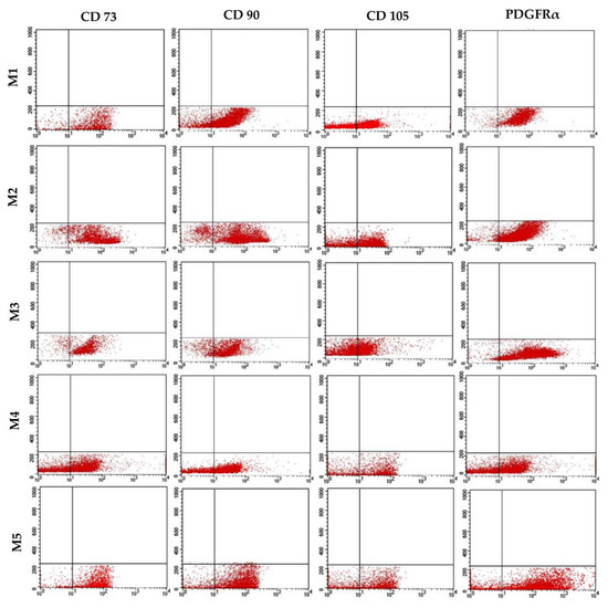 - Kresic, N.; Prislin, M.; Vlahovic, D.; Kostesic, P.; Ljolje, I.; Brnic, D.; Turk, N.; Musulin, A.; Habrun, B. The Expression Pattern of Surface Markers in Canine Adipose-Derived Mesenchymal Stem Cells. Int. J. Mol. Sci. 2021, 22, 7476. [Google Scholar] [CrossRef]