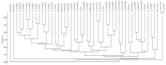 3.4. Genotypic Diversity of LAB from Goats as Evaluated with RAPD