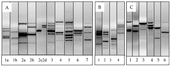 - Ruiz, P.; Seseña, S.; Palop, M.L. A comparative study of different PCR-based DNA fingerprinting techniques for typing of lactic acid bacteria. Eur. Food Res. Technol. 2014, 239, 87–98. [Google Scholar] [CrossRef]