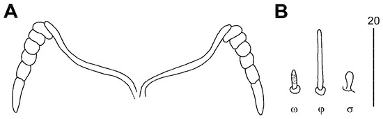The qualitative characters from the external morphology, such as the presence/absence of a structure or the form of specific morphological features, were used in this analysis. Only adult females were analysed because males and immatures are unknown in many included taxa. In total, 29 OTUs and 49 informative characters were included in the maximum parsimony analysis (Supplementary Table S1). The data matrix was prepared using NEXUS Data Editor 0.5.0 [33] (Supplementary Table S2).