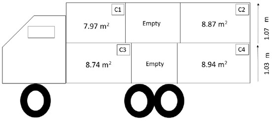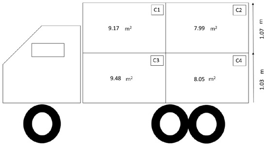 Representation of the truck design, including compartment dimensions, used for transport during summer.