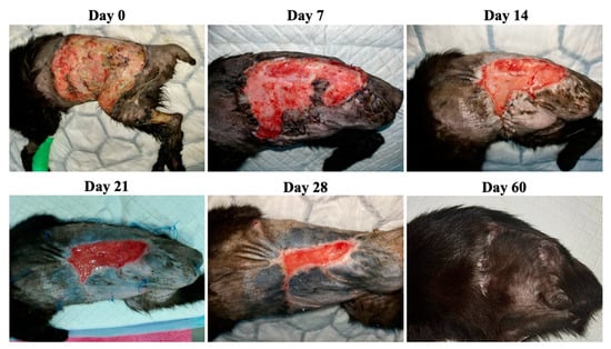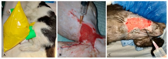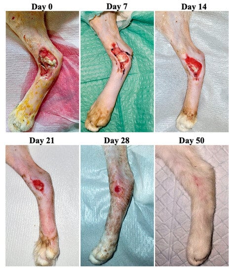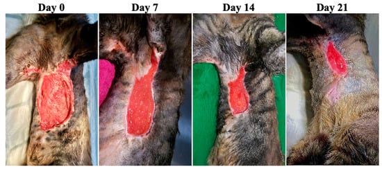 - Bohling, M.W.; Henderson, R.A.; Swaim, S.F.; Kincaid, S.A.; Wright, J.C. Cutaneous Wound Healing in the Cat: A Macroscopic Description and Comparison with Cutaneous Wound Healing in the Dog. Vet. Surg. 2004, 33, 579–587. [Google Scholar] [CrossRef] [PubMed]