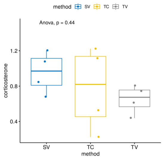 - Kim, S.; Foong, D.; Cooper, M.S.; Seibel, M.J.; Zhou, H. Comparison of blood sampling methods for plasma corti-costerone measurement in mice with minimal stress-related artefacts. Steroids 2018, 135, 69–72. [Google Scholar] [CrossRef]