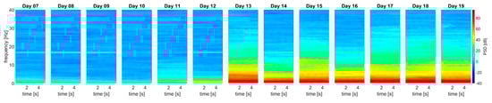 From ED07 to ED12, a consistent signal at 16⅔ Hz was frequently recorded, which was covered by more dominant domains from ED13 onwards. Although the literature is very sparse [57] and partly not-peer-reviewed [58], one external source for this very particular frequency recorded may have been subway tracks run by 15 kV AC at 16⅔ Hz in close vicinity to our laboratory.