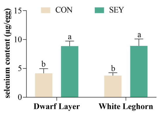 - Lu, J.; Qu, L.; Shen, M.M.; Hu, Y.P.; Guo, J.; Dou, T.C.; Wang, K.H. Comparison of dynamic change of egg selenium deposition after feeding sodium selenite or selenium-enriched yeast. Poult. Sci. 2018, 97, 3102–3108. [Google Scholar] [CrossRef] [PubMed]