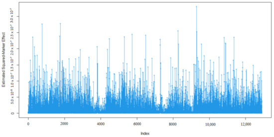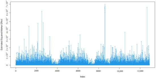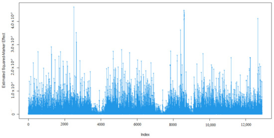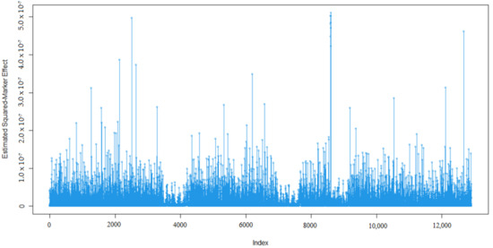 Marker effects (estimated squared marker effects) for 305-day milk yield.