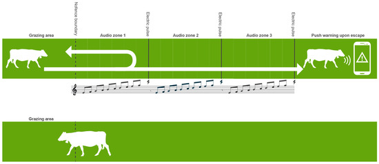 - Umstatter, C.; Morgan-Davies, J.; Waterhouse, T. Cattle responses to a type of virtual fence. Rangel. Ecol. Manag. 2015, 68, 100–107. [Google Scholar] [CrossRef]