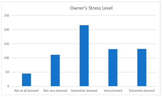 - Demographic data—owner: This section included questions about the owner’s age, gender, education, nationality, country of residence, and how stressed they felt at the thought of their dog travelling by air.