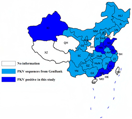 3.1. PKV Is Highly Prevalent in Chinese Swine Herds