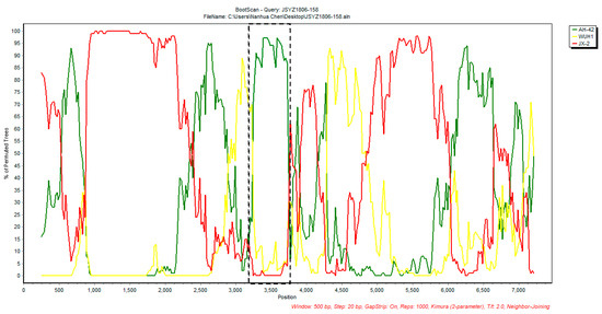 | Recombinant Virus | Parental Virus | Breakpoint 1 | Score for the Seven Detection Methods Embedded in RDP4 | |||||||||