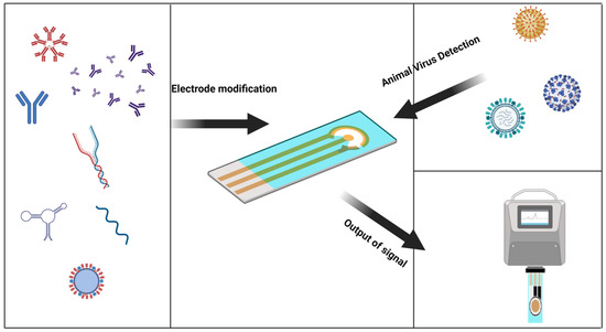 APA StyleHe, X., Wang, S., Ma, C., Xu, G.-R., Ma, J., Xie, H., Zhu, W., Liu, H., Wang, L., & Wang, Y. (2023). Utilizing Electrochemical Biosensors as an Innovative Platform for the Rapid and On-Site Detection of Animal Viruses. Animals, 13(19), 3141. https://doi.org/10.3390/ani13193141
