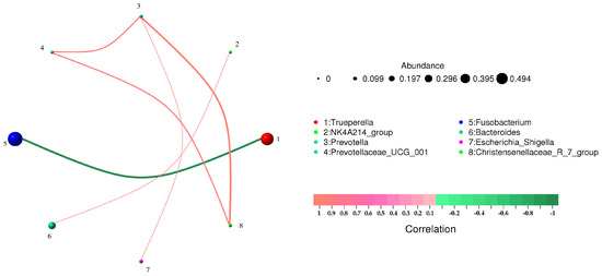 | Trueperella | Fusobacterium | −0.985610761 | 0.000309086 |