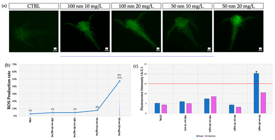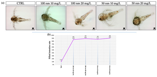 - Contino, M.; Ferruggia, G.; Pecoraro, R.; Scalisi, E.M.; Cavallaro, G.; Bonaccorso, C.; Fortuna, C.G.; Salvaggio, A.; Capparucci, F.; Bottari, T.; et al. Uptake Routes and Biodistribution of Polystyrene Nanoplastics on Zebrafish Larvae and Toxic Effects on Development. Fishes 2023, 8, 168. [Google Scholar] [CrossRef]